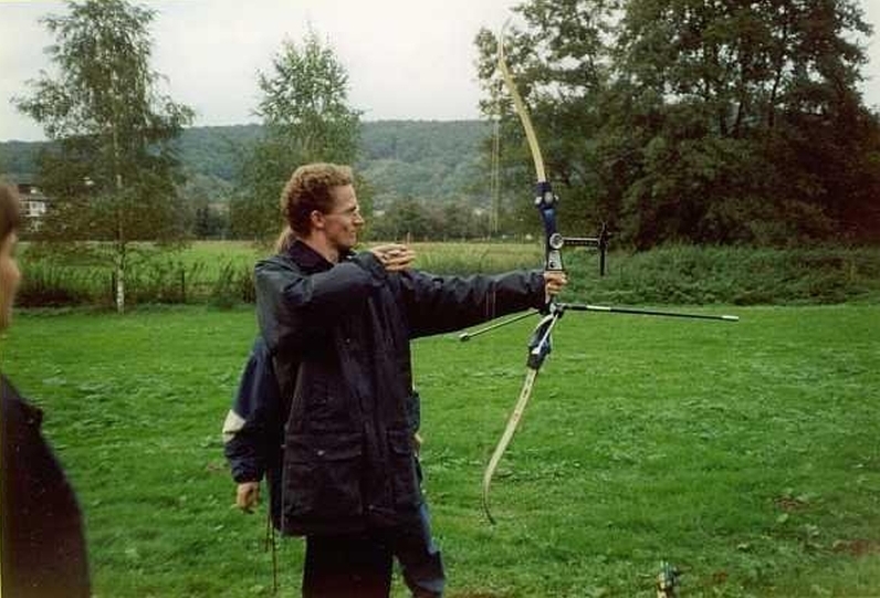 1994 - Jochen bei der Schnitzeljagdaufgabe "Bogenschiessen" -- paper chase task archery