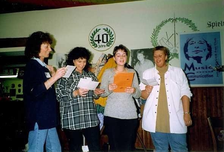 1998 - Eine Schnitzeljagdgruppe trägt ein selbst gereimtes Lied vor